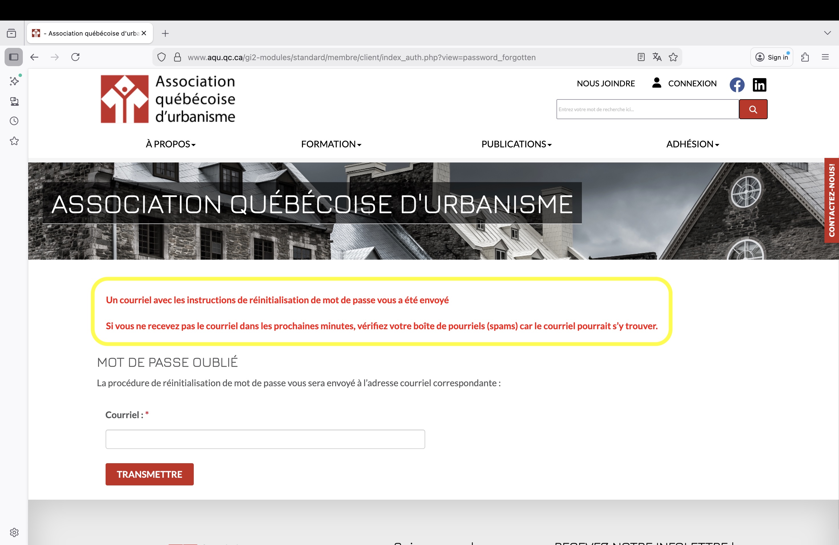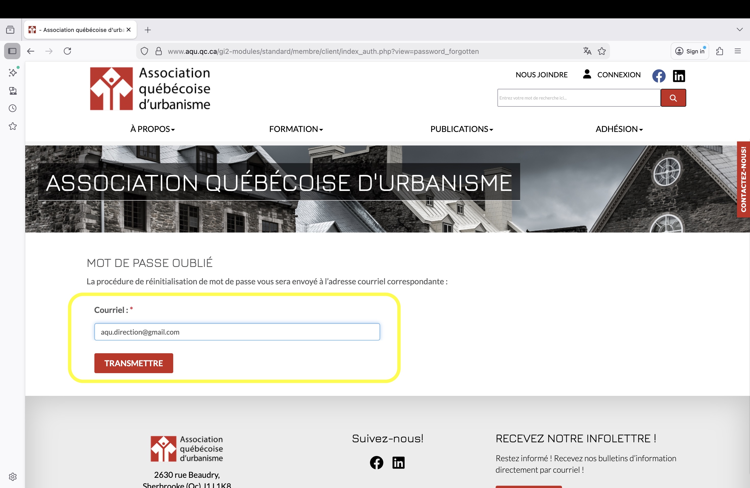 Entrez votre courriel (si vous avez plus d'un courriel, assurez-vous d'inscrire le même courriel que celui avec lequel vous vous êtes inscrits à la formation)