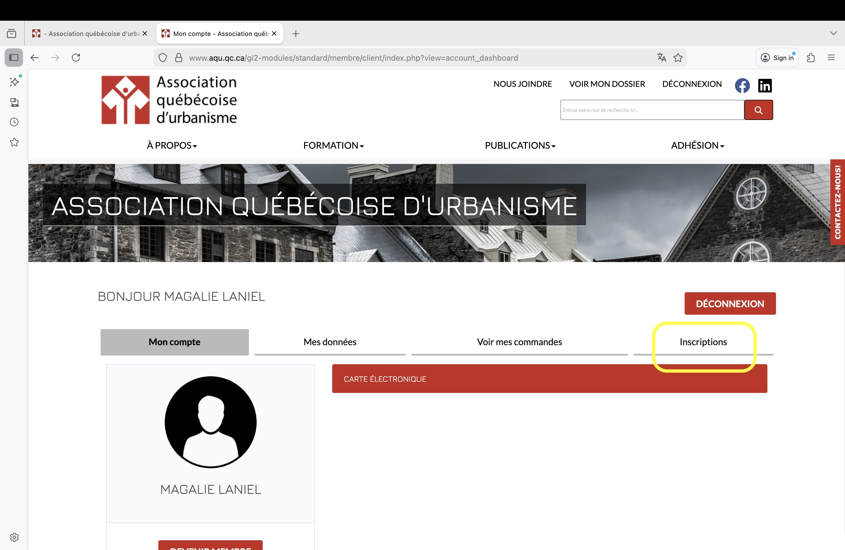 Descendez jusqu'à événements complétés (ou événements en cours) et cliquez sur "voir/imprimer mon attestation" qui se trouve à côté de l'événement en question.